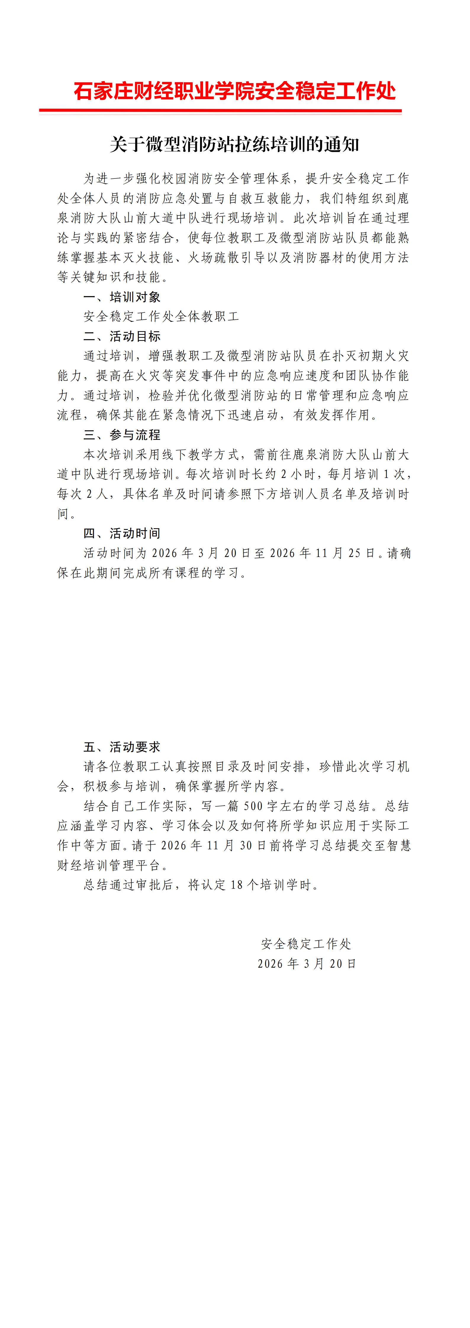 关于微型消防站拉练培训的通知