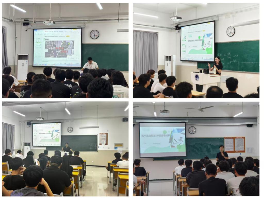 在法治“开学第一课”中,各班辅导员结合专业特点和学生实际,围绕反暴力、防诈骗、远离毒品、防网络沉迷等热点问题,深入浅出地讲解了宪法、刑法、民法典、反有组织犯罪法等相关法律知识。辅导员们不仅剖析了典型法律案例,还以发生在校园内的真实事件为例,“手把手”传授反诈防骗技巧,帮助学生识别风险、规避陷阱,筑牢校园法治安全防线。