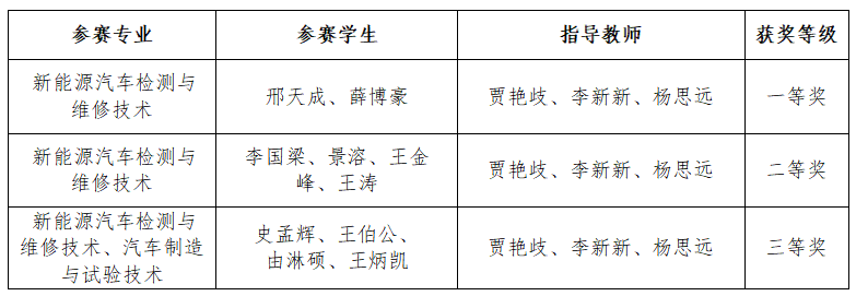 “汽车营销赛项”一院一赛获奖名单