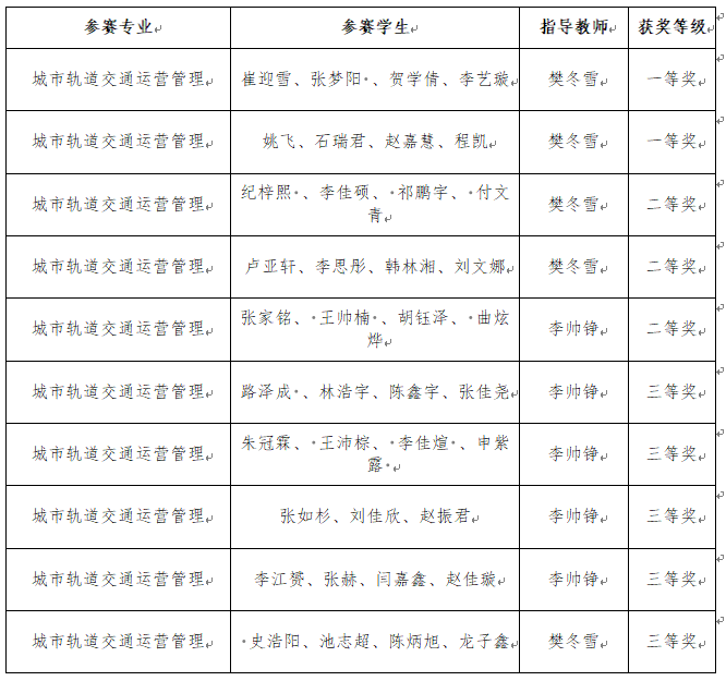 “城轨智能运输”一院一赛获奖名单