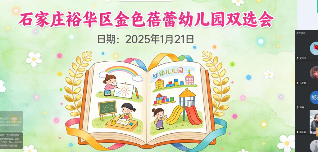 为精准对接行业人才需求,拓宽毕业生就业渠道,助力学子实现高质量就业,2025年1月21日14:31-15:30学前教育与艺术教育学院携手石家庄市裕华区金色蓓蕾幼儿园,成功举办保育员、舞蹈老师双岗位专场线上招聘宣讲会。本次宣讲采用腾讯会议线上视频形式,面向学院学前教育、婴幼儿托育服务与管理、舞蹈表演三大专业毕业生,以“岗位精准匹配+深度互动答疑”的模式,搭建了企业与学子高效沟通的桥梁。