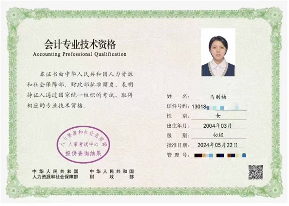 国家职业资格证书:会计专业技术资格(初级)、统计专业技术资格(初级)