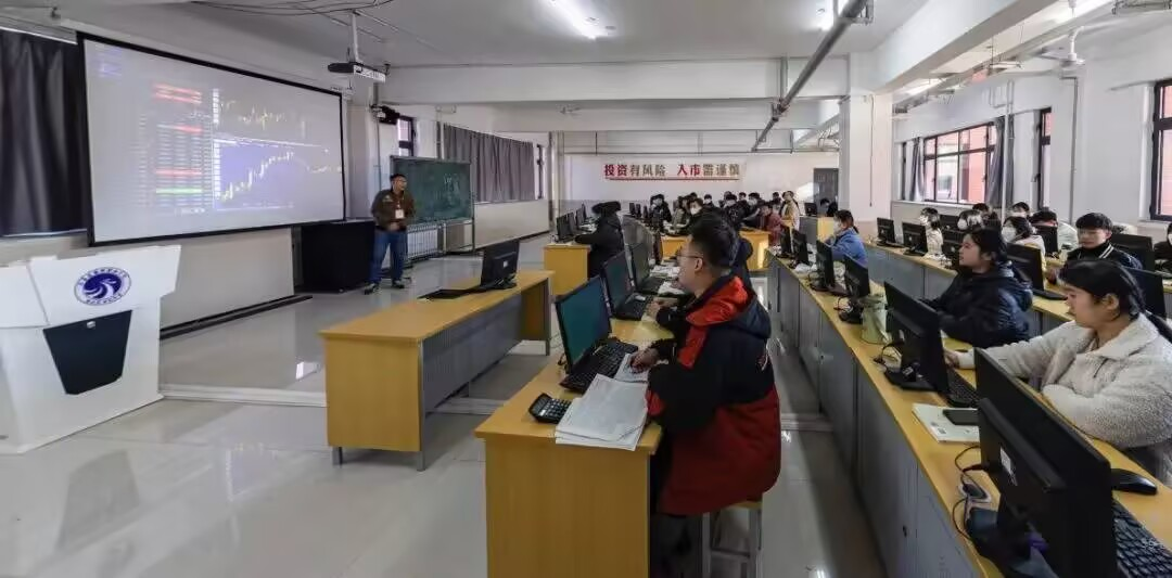 金融模拟交易中心,占地面积为288㎡,工位数82个,实训室配有乾隆智慧云高校金融教学平台、典阅智慧金融核心岗位业务技能实训平台、中联数字金融业务技能实训平台,能够从证券、期货、银行等领域模拟实际业务操作流程,培养学生实际金融业务的处理能力、投资项目的分析决策能力、金融风险的管理能力。依靠及时、高效、专业的金融市场行情资讯和金融模拟交易系统,能使学生将所学的各种金融知识在一个仿真的环境中得到直观、形象的理解,并能亲自动手模拟交易,体会各种投资决策的最终结果,极大地提高了学生的投资分析能力、时机的把握能力、风险的承受能力,真正做到了学习与工作的无缝对接。为学生日后走上工作岗位、快速适应岗位要求奠定坚实基础,是学校重点建设的专业综合实训室。