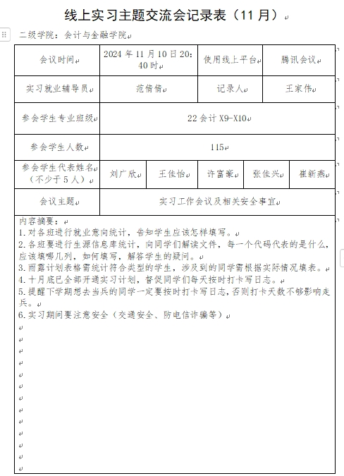 我院开展2022级实习就业线上工作会,旨在精准掌握我院2022级学生动态,组织学生线上交流,分享经验技巧,助力我院学生高质量实习就业。