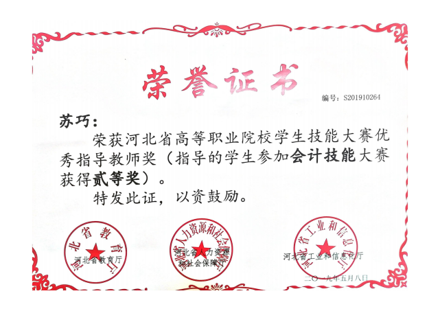 河北省高等职业院校学生技能大赛优秀指导教师二等奖