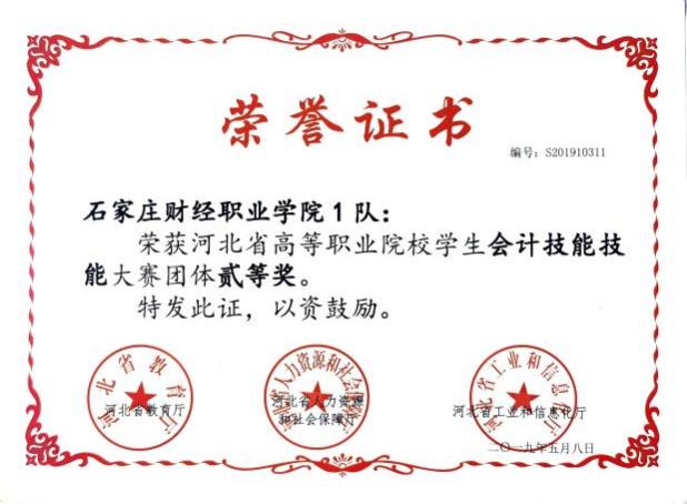 河北省高等职业院校学生会计技能技能大赛团体二等奖