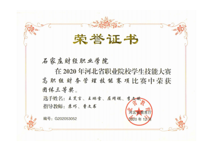 2020年河北省职业院校学生技能大赛高职组财务管理技能赛校团体三等奖