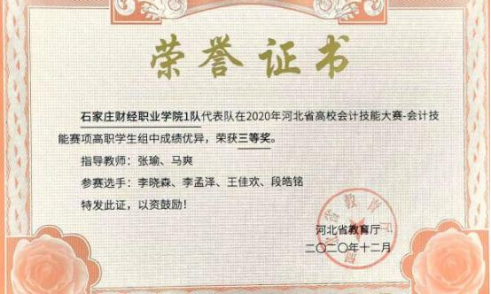 2020年河北省高校会计技能大赛会计技能赛项高职学生组三等奖