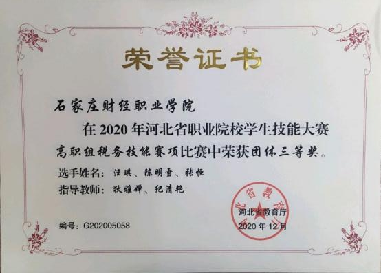 2020年河北省职业院校学生技能大赛高职组会计技能赛项团体三等奖