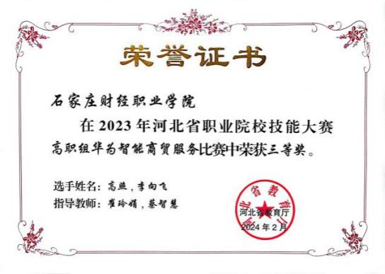 2023年河北省职业院校技能大赛高职组华为智能商贸服务比赛三等奖