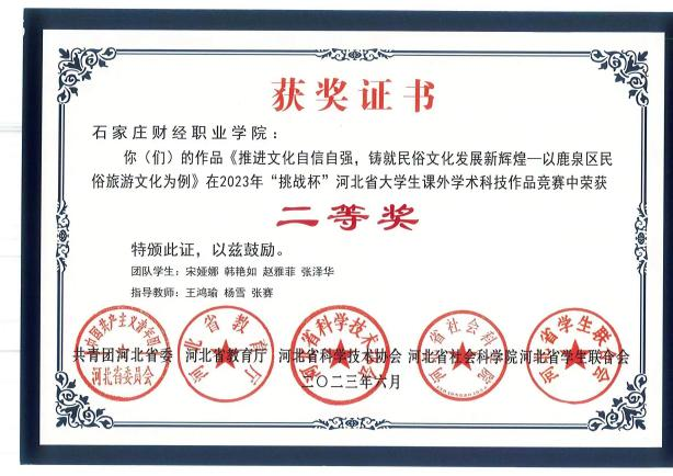 2023年“挑战杯”河北省大学生课外学术科技作品竞赛二等奖