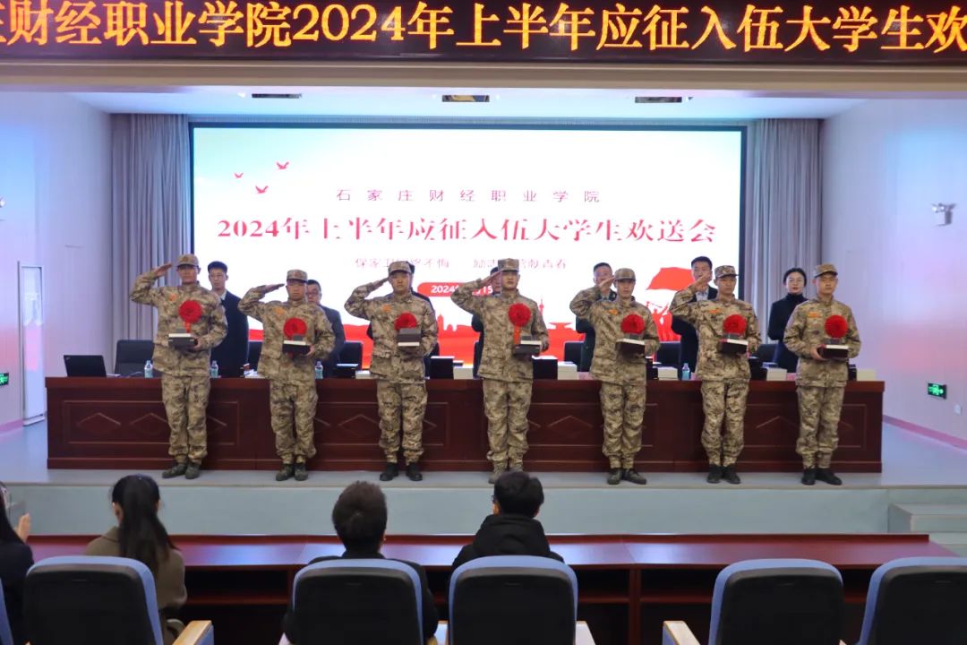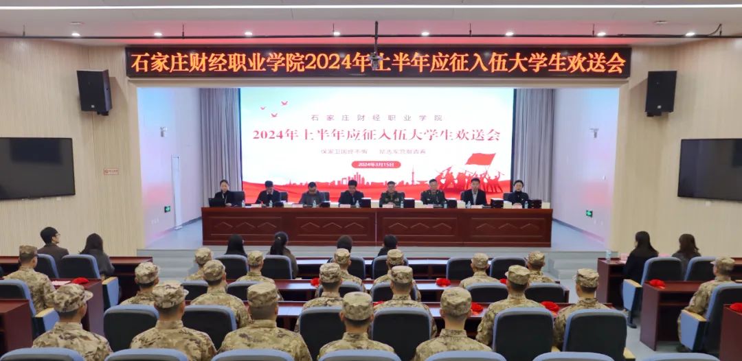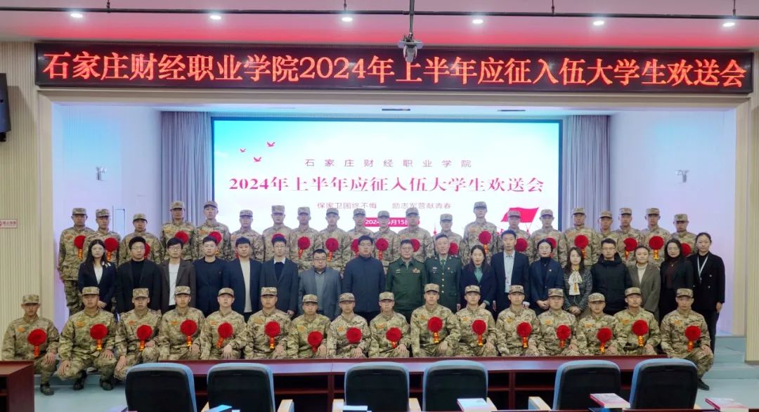 男儿有志在四方 一身戎装戍国防!3月15日,我校2024年春季入伍学生欢送仪式在石家庄市新华区民兵训练基地举行。新华区区委常委、新华区人武部上校部长赵光辉,学校副校长王永利,国防教育办公室主任、武装部部长仪波、经济管理学院党总支书记刘磊,学前教育与艺术教育学院党总支书记郝艳在,信息工程学院党总支副书记胡松,传媒学院党总支副书记聂欣,人居环境学院党总支副书记任春娇,交通工程学院党总支副书记张立勇以及各二级学院的辅导员代表共同出席,共同祝贺准新兵们即将迎来人生中的新征程!仪波主持本次活动。