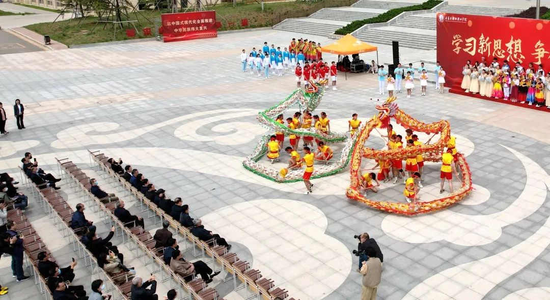 云销雨霁,风清气爽。在卧龙校区祥云广场中央,校学生社团表演了异彩纷呈的文艺节目:活灵活现的非遗项目“北白砂舞龙”、热闹欢腾的歌舞“祖国你好”、声情并茂的朗诵“党的颂歌”、刚柔并济的舞蹈“井陉拉花”。精彩的演出博得阵阵掌声,领导们对学生多方面、全方位的展示给予高度赞扬。