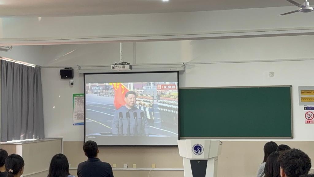 大家聚精会神地观看每一个环节,整齐划一的方阵、先进精良的武器装备、士气高昂的受阅队伍,无不展现出强大的国防实力和良好的军队风貌。在场教职工无不为受阅将士的飒爽英姿而心潮澎湃,为祖国的日益强盛而倍感自豪与骄傲,更从这铿锵的步伐与先进的装备中,深刻感受到了民族复兴的坚实底气和磅礴力量。