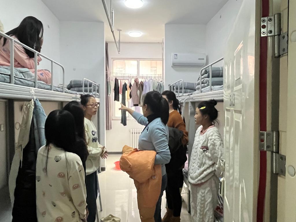在检查过程中,我院党总支书记郝艳在与同学们亲切交流,询问他们的学习和生活情况,关心他们在宿舍生活中遇到的问题。对于发现的安全隐患,郝艳在书记和辅导员们现场提出整改要求,并督促学生立即整改。