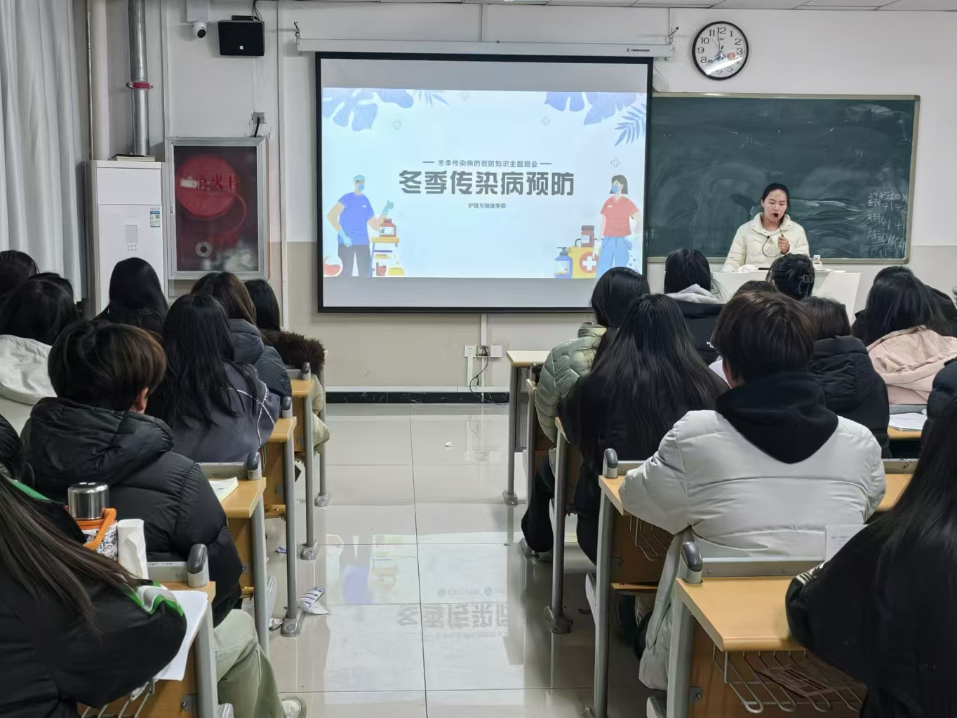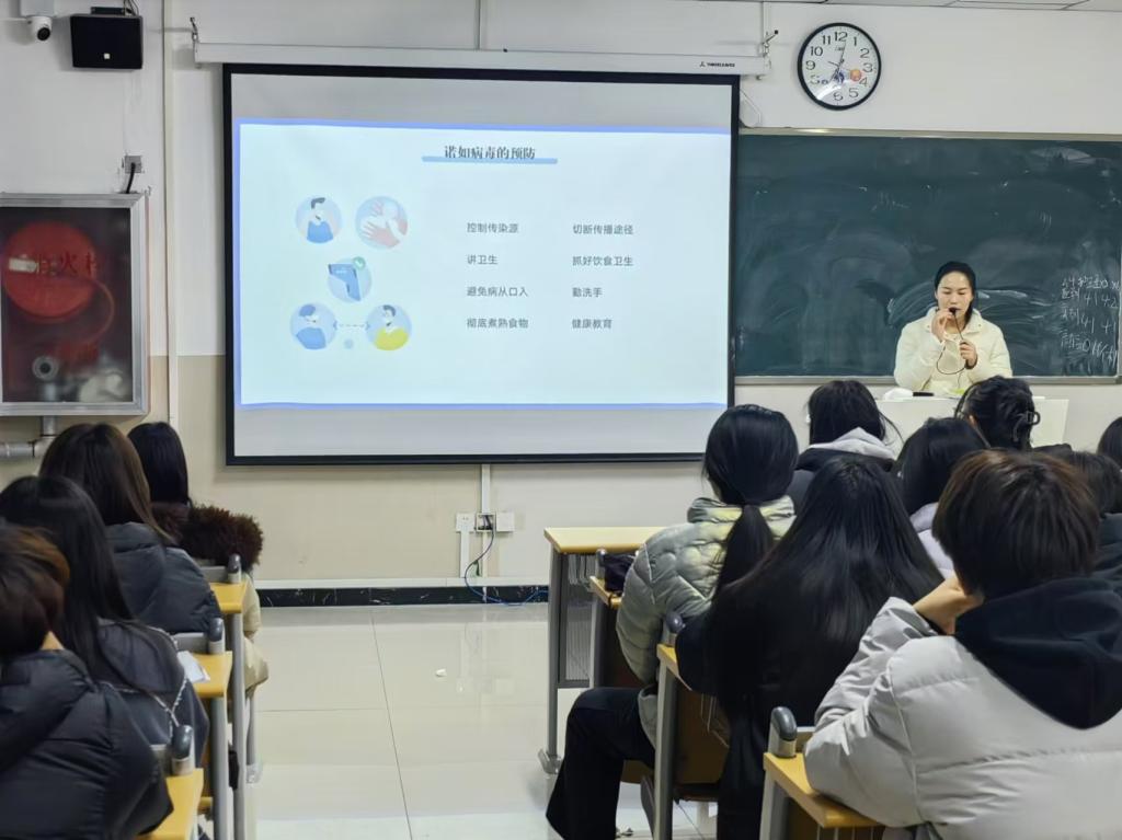 活动伊始,各班级辅导员着重强调了冬季传染病预防的重要性。冬季气温较低,气候干燥,是流感、水痘、诺如病毒感染等传染病的高发期,而学校作为人员密集场所,一旦有传染病发生,极易造成传播和扩散。因此,做好预防工作刻不容缓。