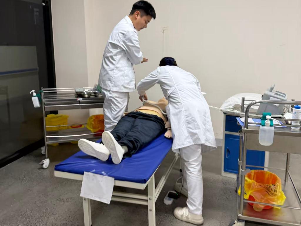 自成功入选备赛核心梯队,同学们便迅速切换至高强度备赛状态,开启“课堂+实训室” 的双重模式——在完成日常学业任务的基础上,主动利用课余时间投身技能训练,将世赛标准与规范深度融入每一次实操练习。指导教师于润萍、康睿玲两位老师锚定世赛精神与省赛核心要求,制定科学系统的长效化集训方案。方案紧扣护理技能大赛考核要点,将每一项操作流程拆解细化、逐点打磨:从无菌操作的毫厘不差到急救流程的分秒必争,从护患沟通的温情把控到临床案例的精准研判,针对训练中的薄弱环节专项设计强化训练模块,实现 “练一项、精一项、通一项”。师生们在实训室里日复一日深耕细研、反复打磨:动作规范度要经得起放大镜检验,时间把控力要达到肌肉记忆级别,理论知识需精准记忆且能灵活运用,临床案例分析更要彰显专业思辨与应急智慧。