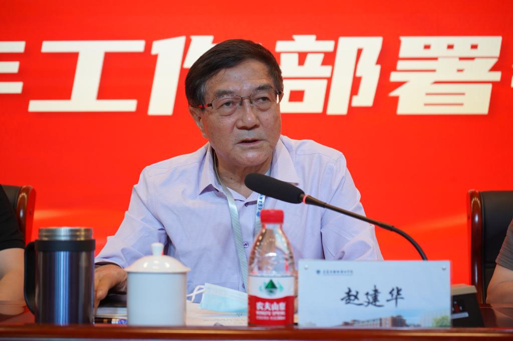 赵建华对暑期仍奋战在工作岗位的二期工程、党政办、人事处、宣传部、教务处、财务与资产处、学生处、招生办、安全稳定工作处、后勤服务集团以及学府校区的教职工表示感谢。