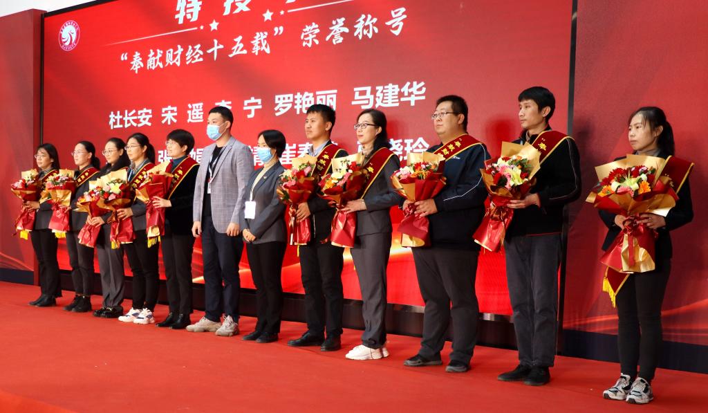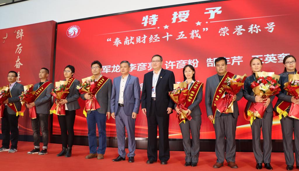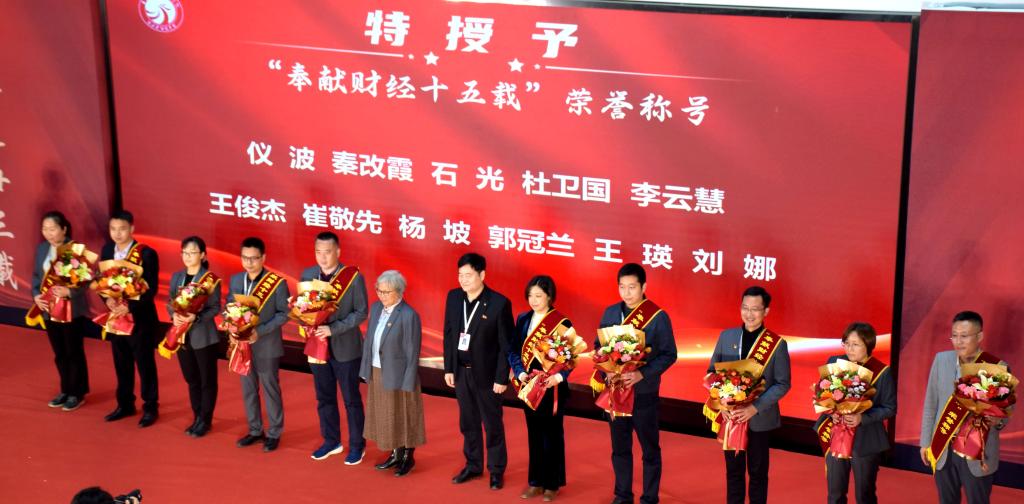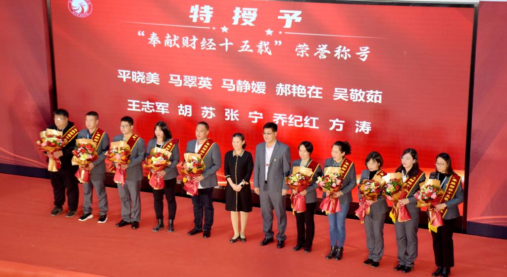大会对“奉献财经十五载”的教职工进行表彰。