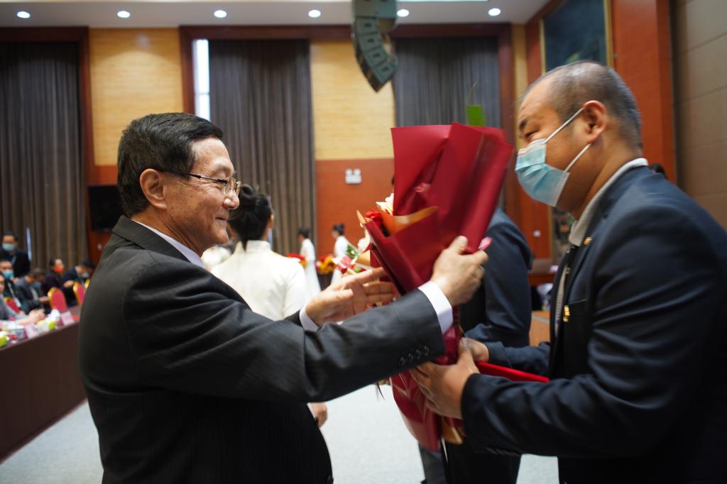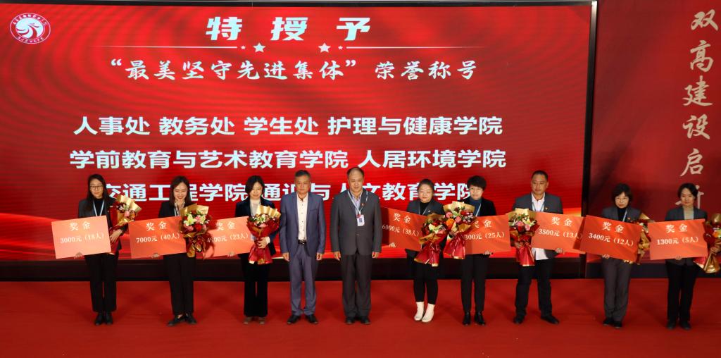 校领导分别为“爱心服务者”“抗疫坚守带头人”“最美防疫先进集体”“最美坚守先进集体”获奖代表颁发证书与奖金。