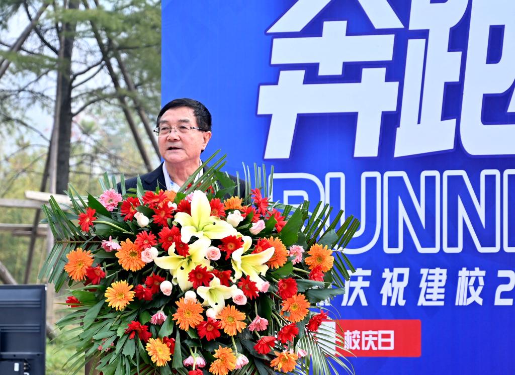 10点26分,举行“奔跑吧财经人”校园马拉松活动,校长赵建华致辞。奥运冠军庞伟助力校庆,并为校园马拉松鸣枪。48名师生依次接力在校园奔跑,他们身着印有1999-2022不同年份的衣服,象征着学校的发展与传承,展现了“财经人”不断挑战自我、超越自我的精神品质。