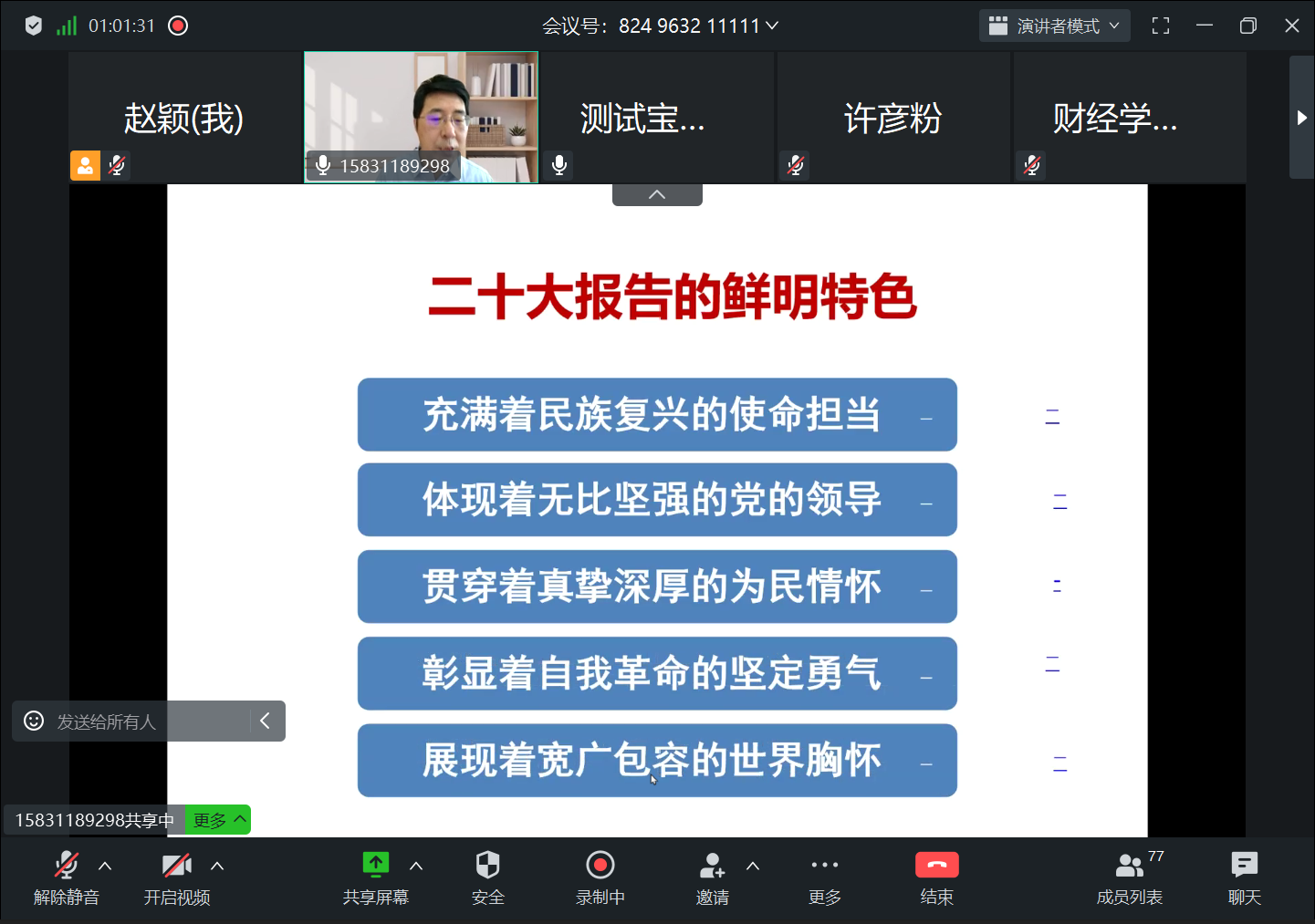 随后,王英奎、申丽坤、杨立芬、李芳四位中层干部分别从自身的工作岗位出发分享了各自在财经的经历和对教育的热爱。