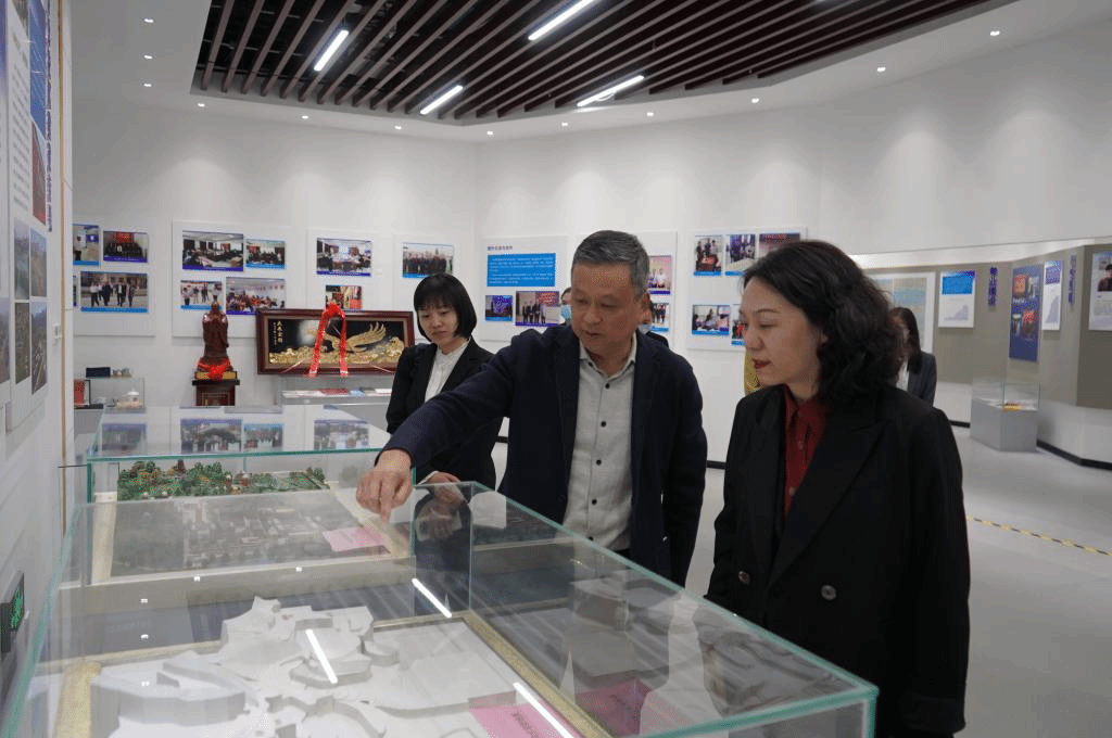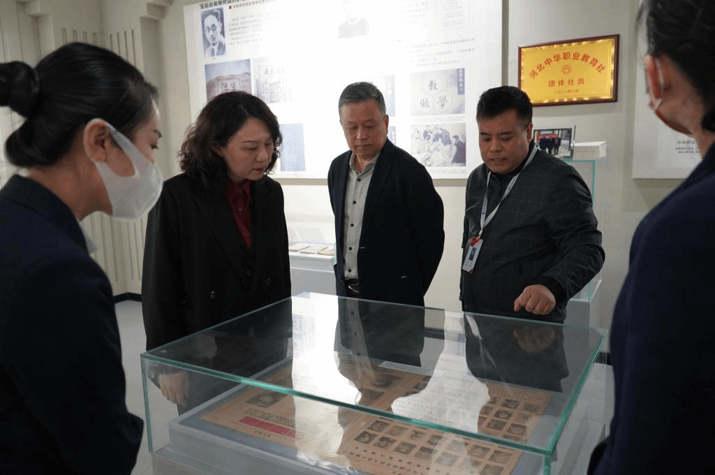 最后,李文涛邀请闫晓霞一行参观了校史馆、中国职业教育展室、共产主义运动展室、非遗传承展室。闫晓霞一行人员对学校在教学改革、信息化建设上取得的成绩给予高度认可,同时,对学校展室群规划建设予以充分肯定。