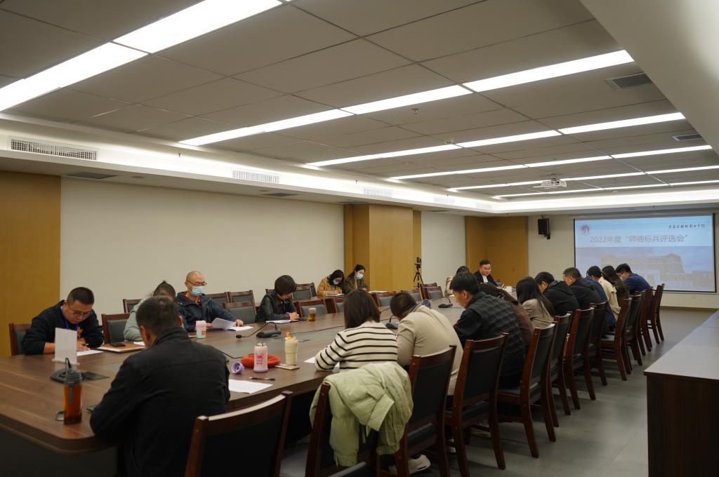 3月29日上午,我校2022年度师德标兵评选会在图书馆第一会议室召开。此次评选会共25位候选人参与评选,评委由各候选人所属党支部书记/副书记组成。会议由副校长吴敬茹主持。