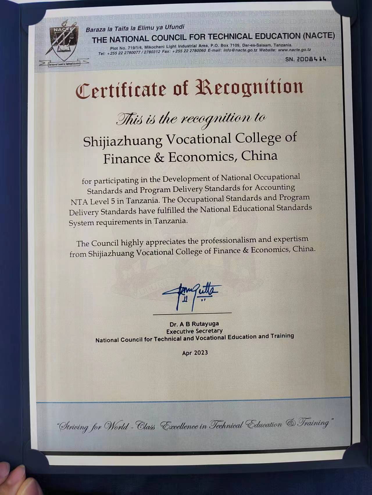 我校会计与金融学院参与的坦桑尼亚职业标准会计员5级标准开发项目取得坦桑尼亚职业教育委员会认证