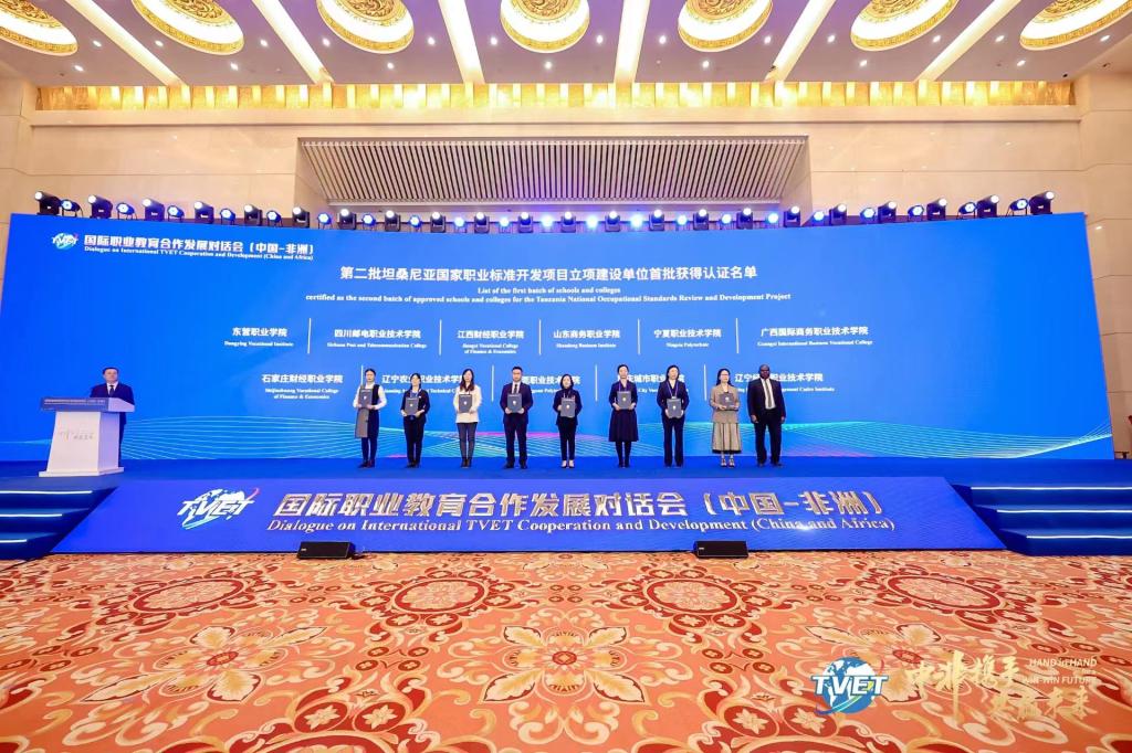 在大会的“中国职业院校校长论坛暨中非职业教育联盟2023年年会”部分,中非职业教育联盟公布了调整后的第一届理事会组织机构人选、新增联盟成员单位名单,我校正式成为中非职业教育联盟第一届理事会新增理事单位。大会还公布了第二批坦桑尼亚国家职业标准开发项目立项建设单位首批获得认证的单位,我校参与的坦桑尼亚职业标准会计员5级标准开发项目,取得坦桑尼亚职业教育委员会认证,大数据与会计专业实现了国际职业标准输出。