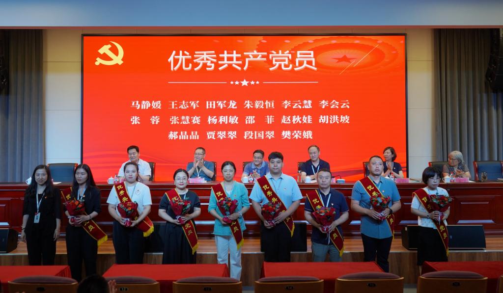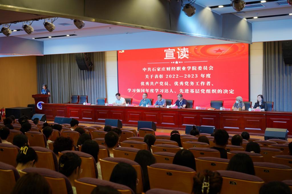 肖玉辉宣读《中共亚英体育ag委员会关于表彰2022—2023年度优秀共产党员、优秀党务工作者、学习强国年度学习达人、先进基层党组织的决定》,表彰了一批先进典型,校领导为获奖集体和个人颁发了荣誉证书。