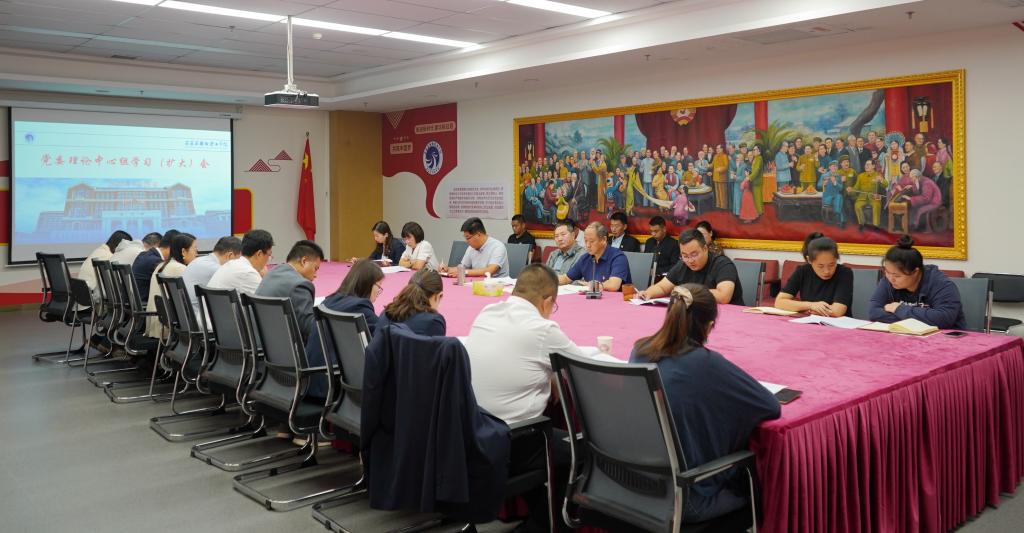 会上,赵振新带领全体参会人员全面学习了《中共石家庄财经职业委员会关于深入开展学习贯彻习近平新时代中国特色社会主义思想主题教育的实施方案》,详细解读《实施方案》的核心内容与重要要求,并对重点工作及实施目标进行主要讲解。