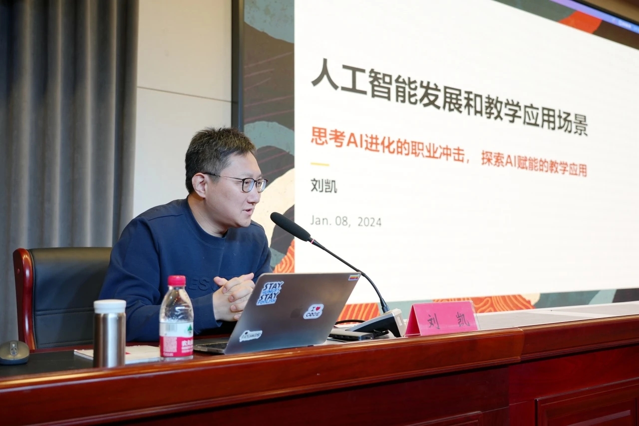 1月8日上午,学校邀请全球知名数字科技企业甲骨文软件数字化转型专家刘凯,作《ChatGPT在教育领域的应用》专题讲座。在讲座中,他分析了人工智能技术对于科技的推进、对教学方式的引导和改变,详细讲解了人工智能技术对人类未来职业产生的影响以及面对未来人工智能发展趋势我们应该形成什么样的思维,如何寻求认知突破等内容。通过这次讲座,丰富了我校领导干部知识体系,拓展了前沿技术领域更为广阔的视野,为我校加快信息化建设、科学布局学生培养方向奠定基础。
