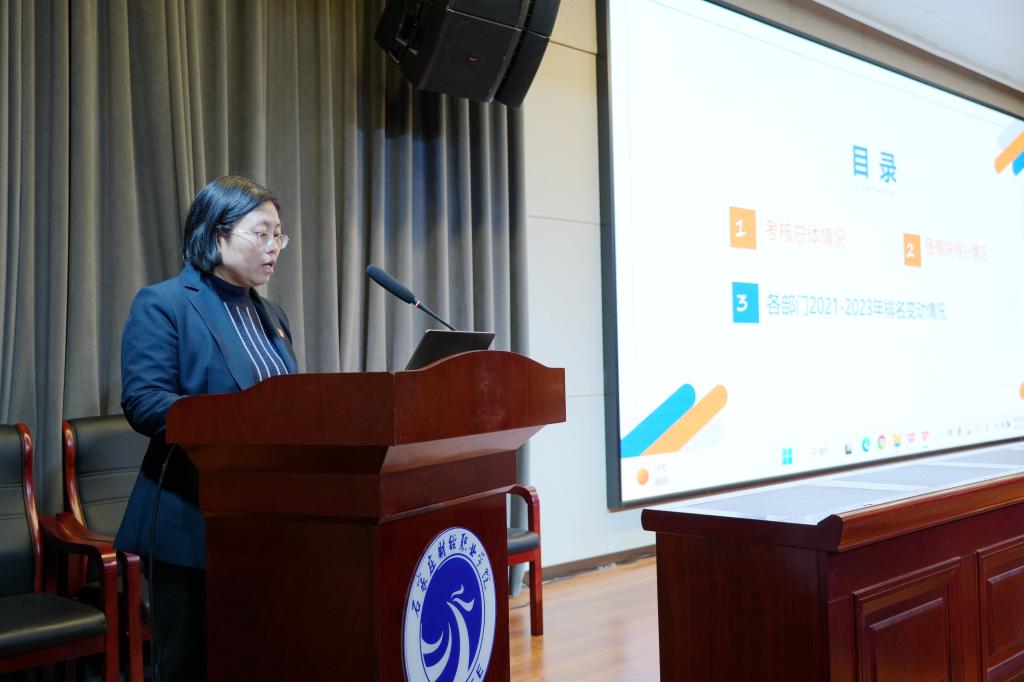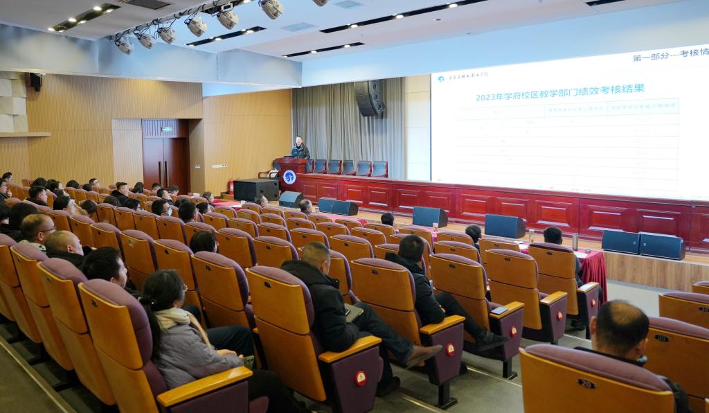 首先,由绩效考核办公室分模块反馈了2023年绩效考核总体情况;各行政处室就所承担的考核内容逐一反馈了重点工作、综合工作具体考核情况,并在详细分析考核数据的基础上,评估了考核成效,提出了改进措施;学府校区办公室从学府校区绩效考核的考核结果、工作成效、突出问题、工作措施等方面进行了汇报。