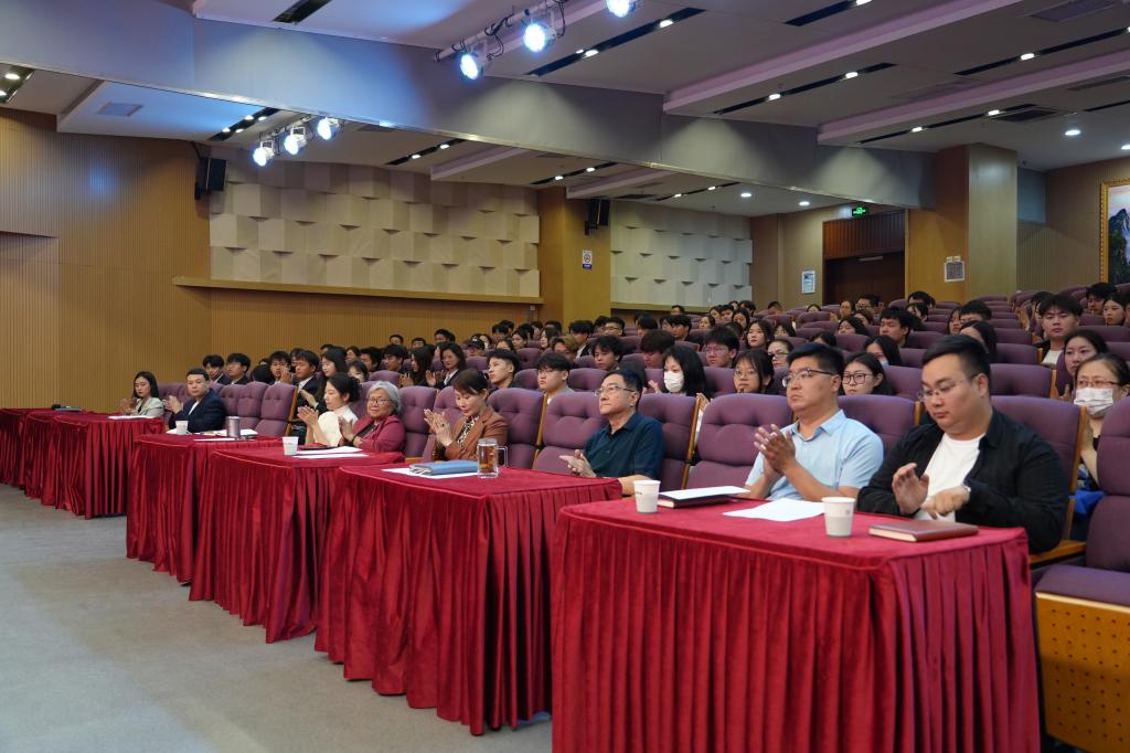 经济管理学院院长刘娜作为教师代表以“跨越一切困难,走向成功的彼岸”为题目,分享了她对职业技能大赛的深刻的感悟和宝贵的备赛心得。
