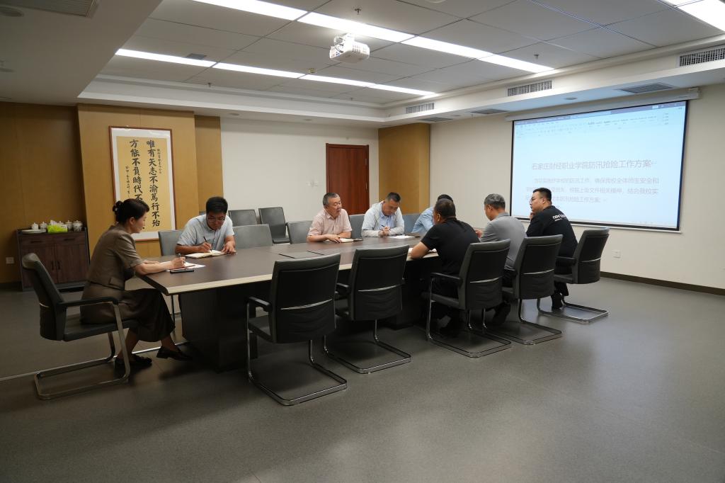 赵振新解读学校暑期防汛抢险工作方案,对学校2024年防汛工作提出具体要求。随后,李彦亮传达教育厅关于暑期防汛相关文件精神,各处室负责人针对暑期防汛工作作了具体说明。