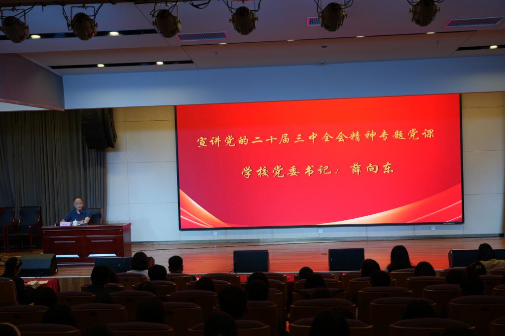 8月26日下午,我校党委书记薛向东在图书馆第一报告厅,为人居环境学院全体教职工专题宣讲党的二十届三中全会精神。