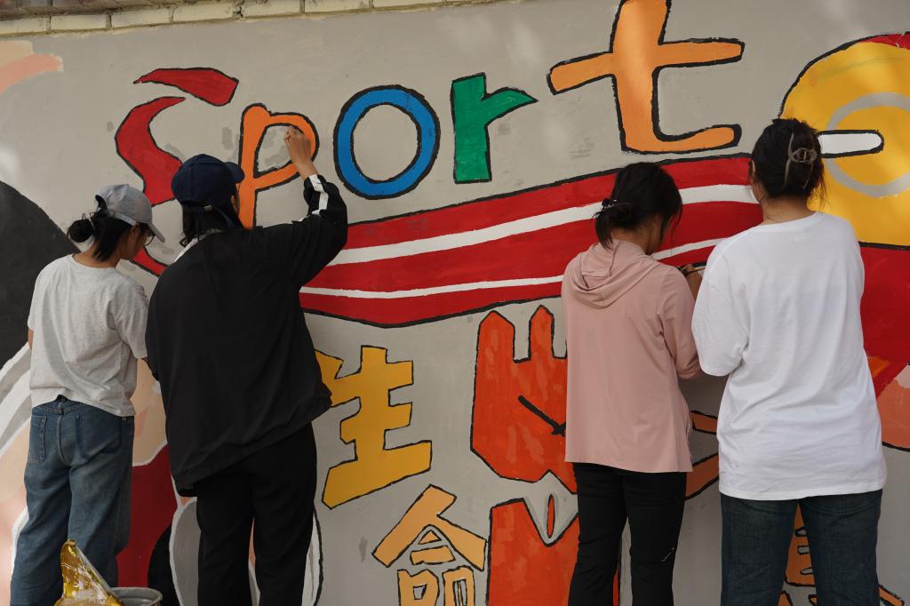 走出智慧培育实训室后,校领导前往操场,调研了正在推进的手绘墙项目。窦炳晨老师详细介绍了手绘墙的设计理念、绘画内容以及创作过程,展示了绘画过程中使用的专业画材、学生的绘画情况及实训进度。手绘墙项目作为学院参与校园文化建设的特色项目,每一期实施都融入了学院独特的艺术创意,充分展现了师生们对美的追求与诠释。