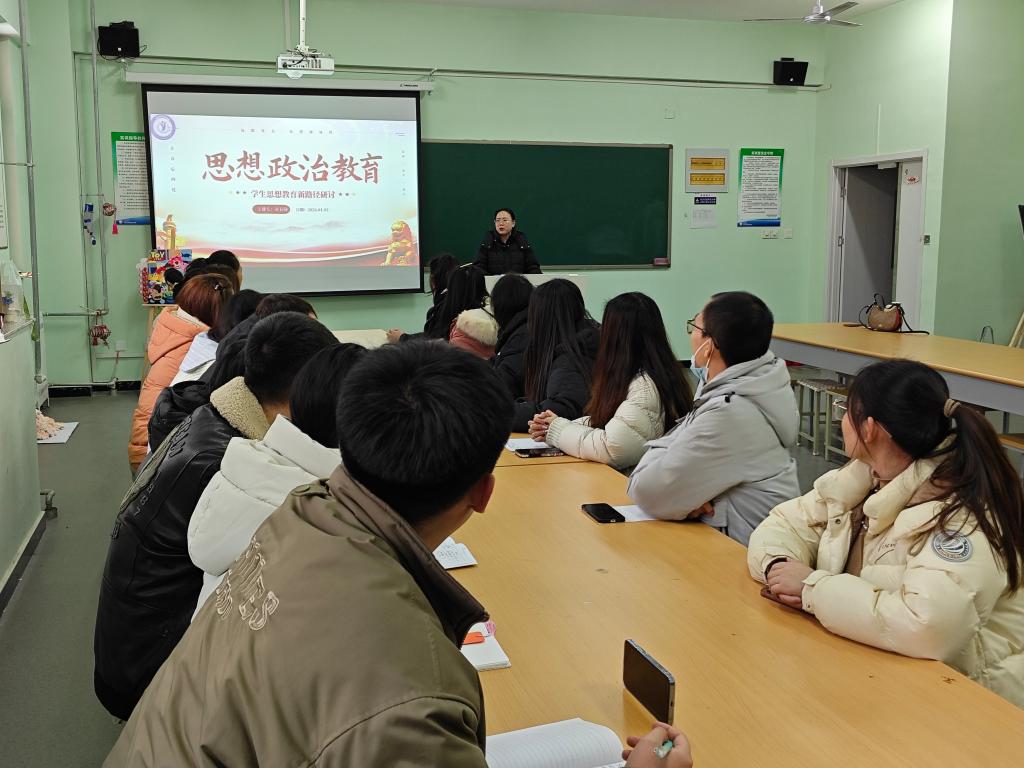 在本次活动中,主要提出了有关学生思政教育的三种新路径,其一:理论教育法。是有目的、有计划地向学生进行马克思主义理论教育或学生系统学习马克思主义理论,逐步树立科学世界观的教育方法。是通过基本原理、思想观念的传授、学习、宣传进行教育的方法。其二:开展实践教育。将思想政治教育与学生的实际生活、专业背景和社会热点问题相结合,让学生在实际情境中理解和运用所学知识,提高思想政治教育的针对性和实用性。其三:弘扬志愿服务精神。通过引导学生参与志愿活动,培养他们的团队合作能力和社会意识,同时也能提高他们对社会问题的认知能力,进一步明确正确的思想政治教育的内容。
