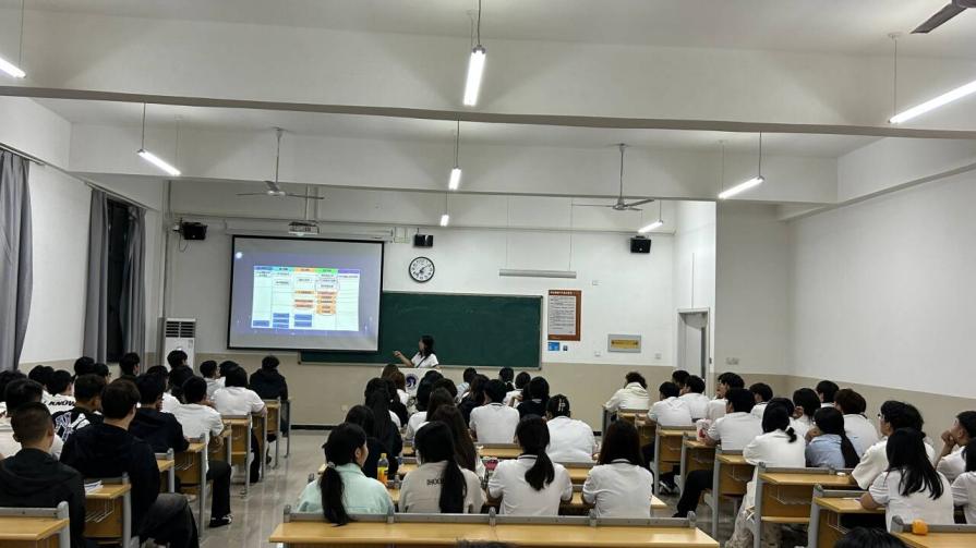 同时,赵婷婷老师聚焦市场营销专业,带来了全面且细致的讲解。内容涵盖专业培养目标、核心课程体系、校内实训与学科竞赛、校外实习实训资源、评奖评优政策,更针对“如何度过三年大学生活”给出具体规划建议,覆盖学习、实践、发展全方面,为新生清晰勾勒出学业与成长路径。