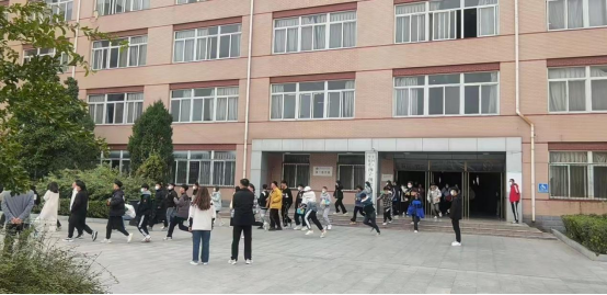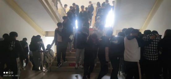 本次逃生演练地点在第一教学楼、第二教学楼,疏散场所为求索广场。演练前学部领导和全体教师结合实际情况制定了演练活动方案,明确职责要求。在演练过程中随着警报的响起,各位老师及时准确的到达指定位置,认真协助,确保活动安全顺利的举行。正在教学楼上课的学生,立即从座位上起立,快速有序的奔向走廊,在老师的带领下,根据预定路线,左手扶右肩,用左手胳膊肘捂住口鼻,弯腰、靠右侧墙体及楼梯,一路纵队撤离到求索广场的指定位置并站好。整个过程紧张有序实用性强,收到了预期的效果。