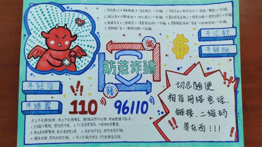 随着电子信息和网络技术的不断发展,电信诈骗正在逐渐成为危害社会安全的一大“毒瘤”,多少个学生和家庭因电信诈骗而损失巨大,后悔莫及。为防患于未然,电子信息学部通过多种形式进行预防诈骗宣传。使广大师生和学生对新时期电信诈骗有了深刻的认识,提高了他们识诈骗、反诈骗的能力。4月份电子信息学部所有班级参加“反诈骗宣传手抄报”活动。