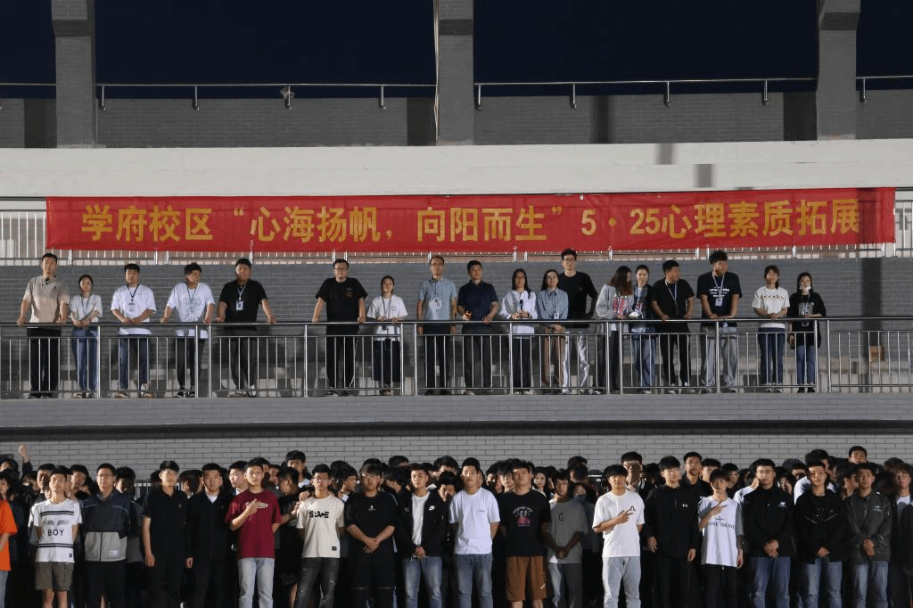 学府校区将遵循学生身心发展特点,积极探索实施适应当代大学生心理育人途径,坚持育心与育德相结合,加强人文关怀和心理疏导,促进学生身心和谐发展,戴好学生心理危机识别“护目镜”、穿好学生心理危机干预“防护服”、开好学生心理危机处置“负压车”,努力推进学生心理健康教育工作的科学化、规范化、品牌化。于5月24日晚上19点在运动场举办以“心海扬帆、向阳而生”为主题的大型心理素质拓展活动电子信息学部2022级全体辅导员和全体学生参加本次心理素质拓展活动。