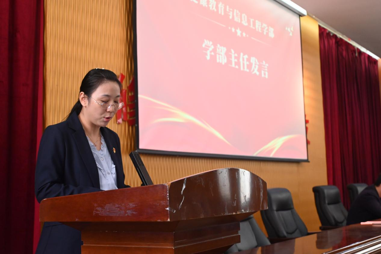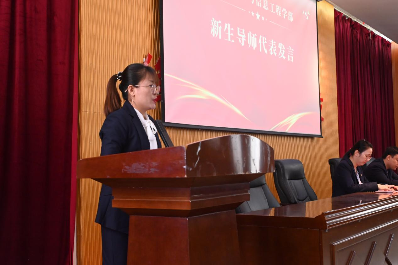 健康教育与信息工程学部教师孟俊清作为新生导师代表发言,她表示将不断帮助和引导同学们在学习上树立自主学习意识,在生活上养成良好的行为习惯。请同学们相信老师,大家携手共进,共同成长。