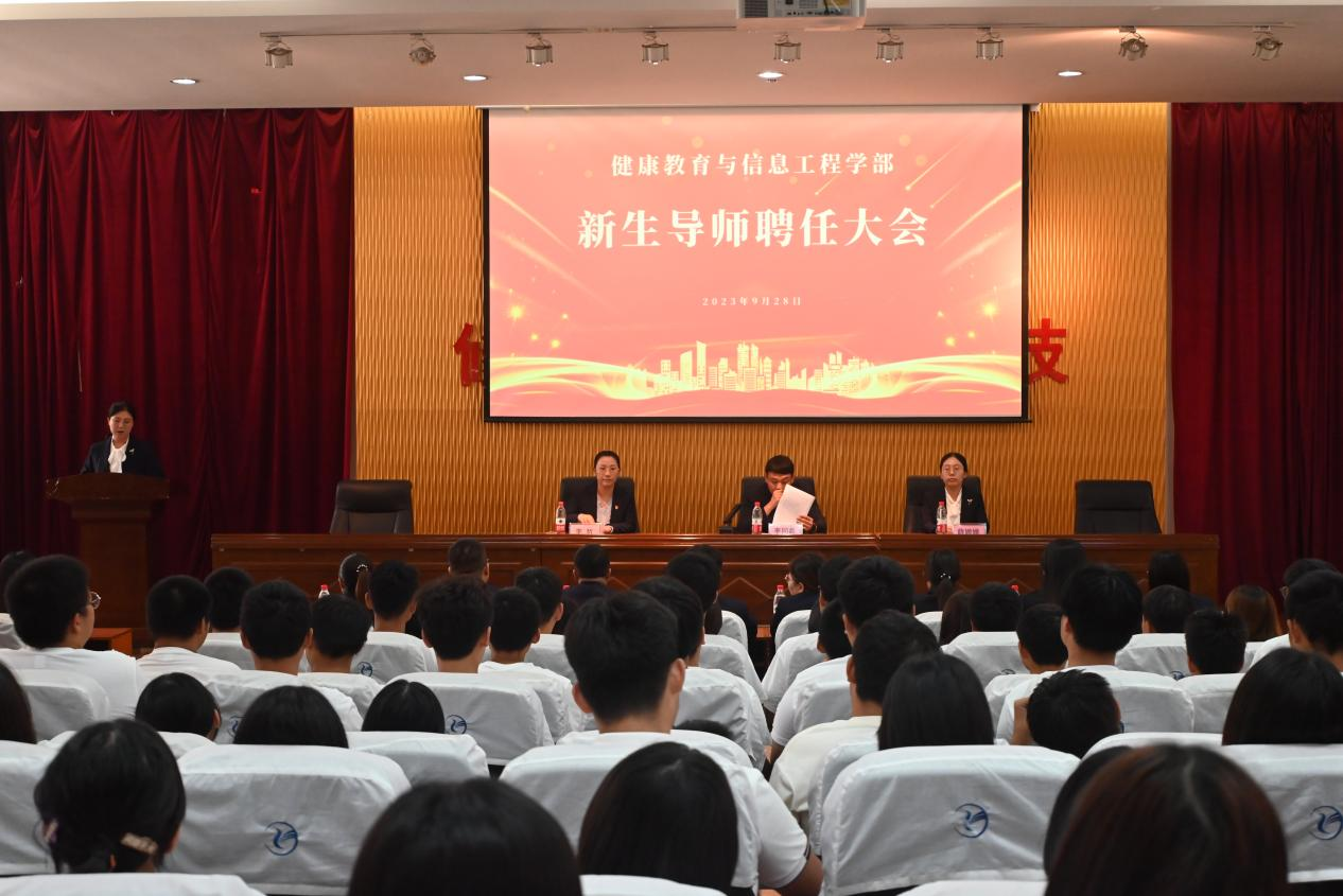 为了进一步加强学校新生导师工作的科学化、规范化、制度化建设,进一步完善新生导师工作机制,加强对新生导师的管理,在学校整体新生导师制工作的安排部署下,健康教育与信息工程学部召开“新生导师聘任大会”。出席本次会议的领导有学校副校长李同鑫,学部主任李哲,副书记薛婵婵。