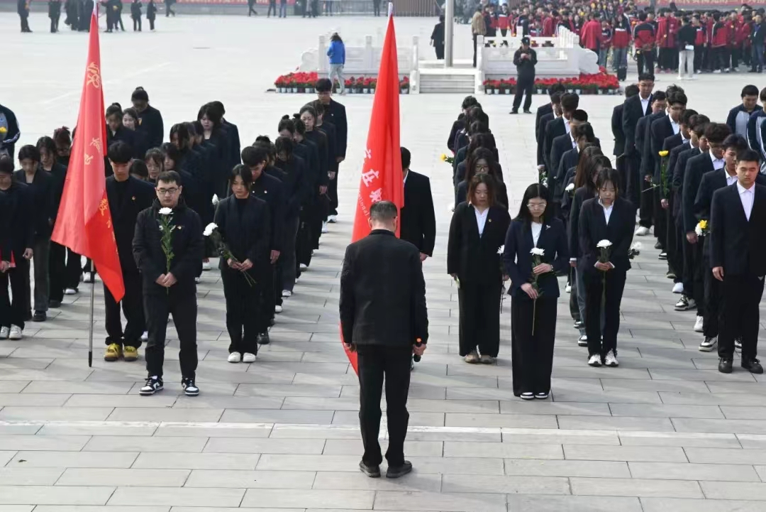 健康教育与信息工程学部师生手持鲜花依次走向烈士纪念碑,将鲜花敬献在烈士纪念碑前,表达对烈士的敬仰和怀念之情。随后,在史宝田书记的带领下,健康教育与信息工程学部全体师生向革命烈士默哀,表达悼念!
