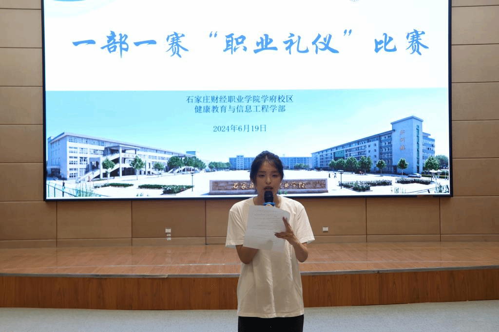 6月19日健康教育与信息工程学部“一部一赛”职业礼仪比赛成功举行。本次比赛有9支队伍共46名参赛选手参加。竞赛形式为团体赛和个人赛,通过礼仪形象展示、主题演讲两个环节,全面考察参赛选手的职业礼仪水平及综合职业素养。