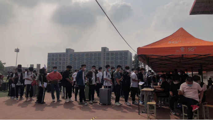 9月15日一早所有的老师、辅导员、学生志愿者到达岗位,操场上一顶顶树立的帐篷;一张张齐整的桌子;还有桌子跟前一群群等待“新人”的教师们都时刻准备好迎接家长、迎接新生。陆陆续续家长跟孩子的到来,也使我们老师的工作忙碌起来,各位老师工作分配明确,一部分负责引导家长、一部分负责学生报到、一部分负责安排宿舍、还有我们学生志愿者负责带领学生家长领取被褥、进入宿舍。重复的工作、狂奔的脚步、忙碌的身影,他们一直为本次迎新工作奔忙着,是他们的无私奉献、辛勤工作与优质服务使我们的迎新工作顺利开展、落下帷幕。
