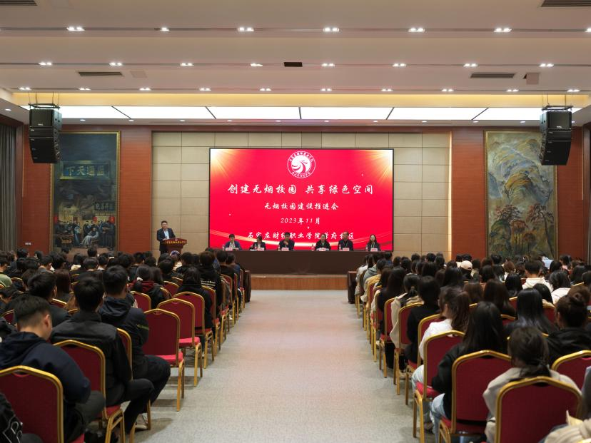 为响应市、区教育局关于开展创建无烟学校的通知精神,为进一步保护师生的身心健康,努力营造一个无烟、清洁、健康的学习,工作和生活环境,我校区于2023年11月1日在第二实训楼报告厅开展“学府校区无烟校园建设”主题活动。