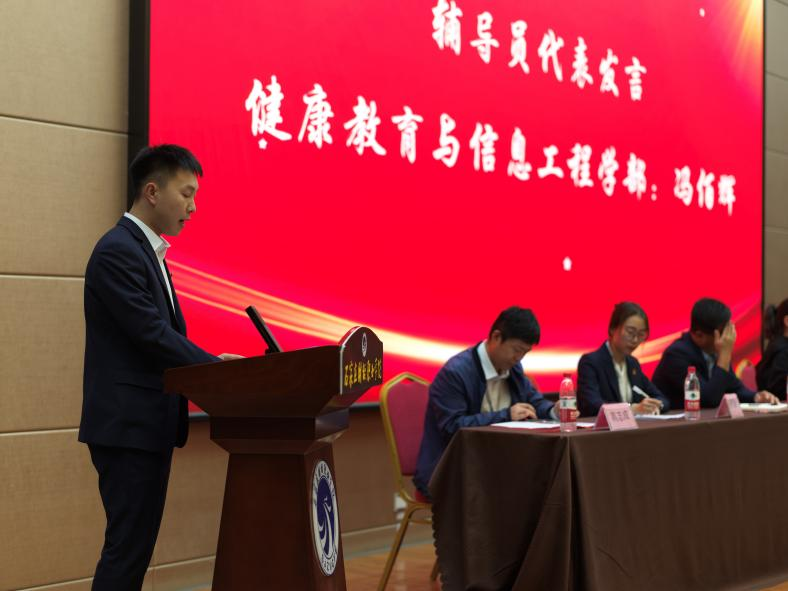 接下来,健康教育与信息工程学部辅导员老师 冯佰辉进行了发言,表示从自身做起、从现在做起,远离烟草,珍爱生命!